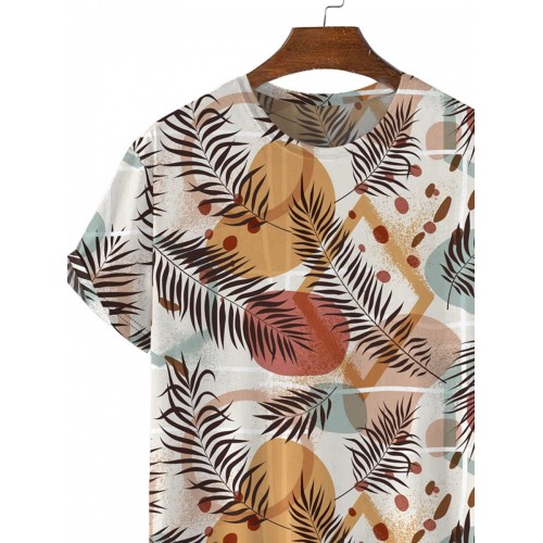 Men's Geometric Tropical Leaves Short Sleeve T-Shirt