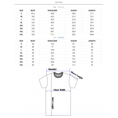 Size Chart(Dimensions in Chart 1 are in cm and Chart 2 are in inches)