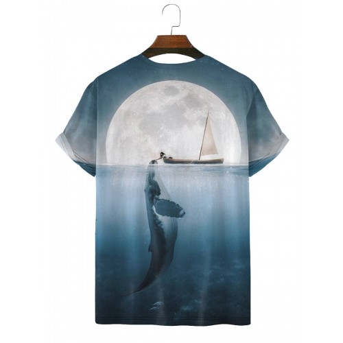 Men's Fashion Whale Crew Neck Print T-Shirt